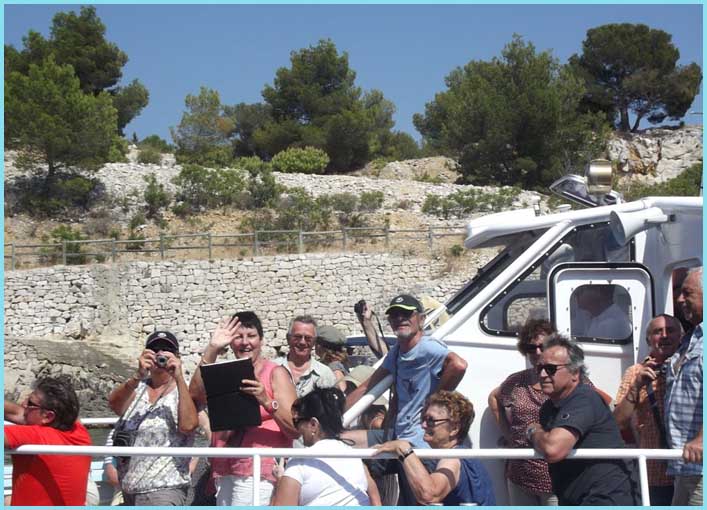Ultime escapade avant les vacances. Deux cars pleins, 104 excursionnistes pour une virée à Cassis la magnifique. Profitant d'un temps radieux, une partie de la grande famille de l'Oustau dou Piuei s'est déplacée pour une journée mémorable. Odorat, goût et vue ont été comblés. Après le restaurant, trajet en petit train et balade en bateau. Des calanques superbes, un air vivifiant et salvateur ont forcé l'admiration des tous, heureux de partager toute cette beauté et cette entente cordiale. Des rires et des signes d'un bateau à l'autre, chacun se photographiant et s'interpellant ... Le problème pour la présidente et organisatrice, Marie-Claude Charpentier, a été de les faire descendre des embarcations, car ils voulaient repartir en mer. Que des souvenirs heureux !