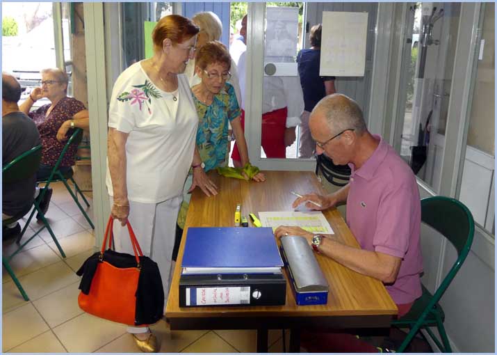L’accueil chaleureux du président augurait une reprise de contact effective. Il est aujourd’hui entoure du vice-président René Ozada, du trésorier Daniel Clair, mais d’aucun secrétaire (poste à pourvoir). Depuis le départ de Marie-Claude Charpentier, qui gérait un effectif de presque 400 adhérents, il reconnaît certain fléchissement, suivi d’un sursaut : « Nous accueillons actuellement environ 340 adhérents. Du 9 juillet au 10 août, seule une permanence était assurée les mardis et jeudis après-midi. »