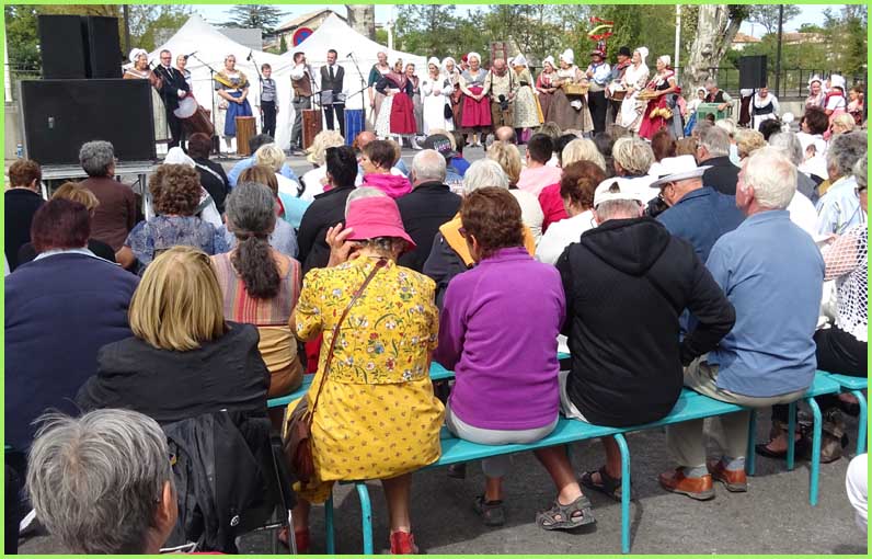 En hôtes et organisateurs, Parlaren et Li Cadelina proposaient un repas en plein air. Les attelages et calèches de la Montagnette de Maillane ravivaient un passé éclatant. Les Amis du Patrimoine rural de l’Etoile-sur-Rhône exposaient des outils anciens et réveillaient de vieux métiers. Quant au groupe marseillais du Roudelet Félibren de Château-Gombert, il s’est distingué par des chants traditionnels et des danses d’une grande virtuosité, dans un registre comparable à celui de Li Cardelina.