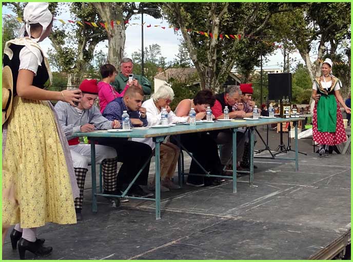 Au final, Parlaren ressuscitait son fameux concours du plus rapide mangeur d’olives, interrompu depuis 2010. Seuls six concurrents ont tenté l’expérience qui dure trois minutes. Elle a été remportée par Joëlle Mure qui a recraché 63 noyaux (loin du record de Jeannine Tailland qui en crachait beaucoup plus).
