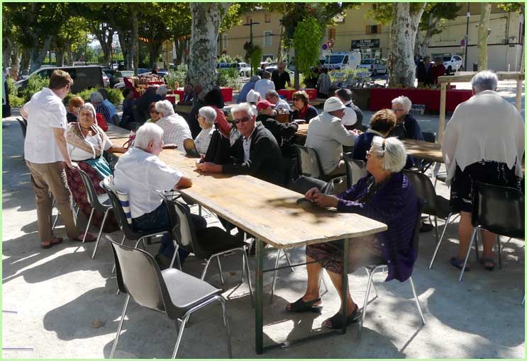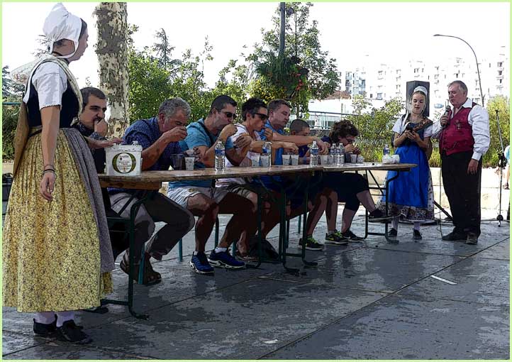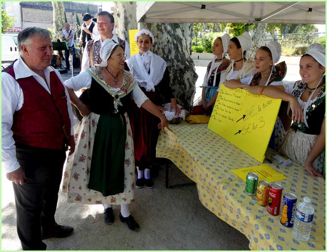 Les rythmes provençaux ont ensuite repris le dessus avec l’incontournable groupe bollénois Li Cardelina, pour une superbe démonstration de danses provençales en costumes comtadins. La fête s’est conclue avec le concours du plus rapide mangeur d’olives (parrainé par la cave oléicole de Nyons) et remporté par Joël Mur, avec 60 noyaux recrachés en 3 minutes.    J. P.