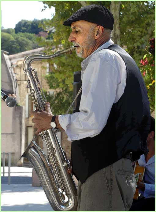 Une cordiale buvette et quelques stands d’artisanat d’art avoisinaient le podium réservé au spectacle durant l’après-midi. La tradition y a pris un sacré coup de jeune avec le concert jazzy de Michel Pellegrino Quartet, habitué des Musicales dans les Vignes des Bouches-du-Rhône, invité à Bollène pour bouleverser le tempo de la farandole qui swingue joliment, non plus au son du galoubet-tambourin, mais à celui du saxo !