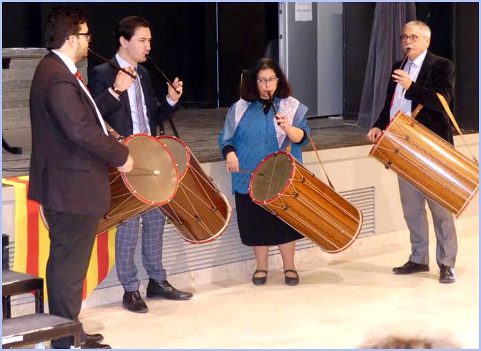 La moyenne d’âge est assez respectable. Mais le verbe, toujours savoureux. Contes, poèmes et galéjades sont dits en provençal. C’est là que le bât blesse pour qui n’use pas familièrement de la langue de Mistral. Il y a bien les cours prodigués à Parlaren. Mais on ne s’y bouscule pas. On s’émotionne et rit quand même, porté par l’hilarité de ceux qui comprennent, toujours ancrés dans la tradition linguistique. Grâce aux tambourinaires, le langage universel de la musique facilite l’intégration du visiteur, muré au-delà du parler régional. Notre défi consiste donc à rendre compte ici d’une vingtaine d’interventions, uniquement dites en provençal. Le plain-pied reste difficile ! Une tombola et un bon goûter agrémentent le handicap.