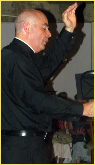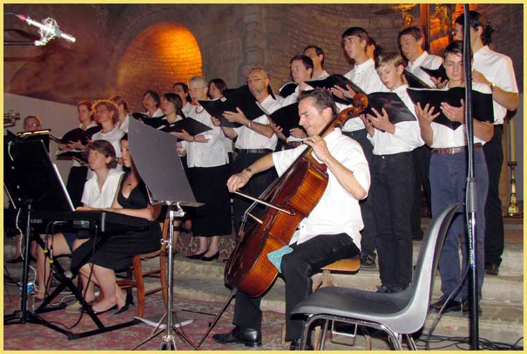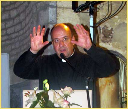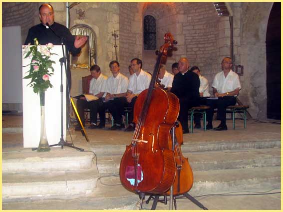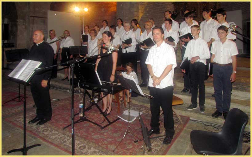 Le père Frédéric Vollaud dirige le chœur venu de Poitou-Charentes