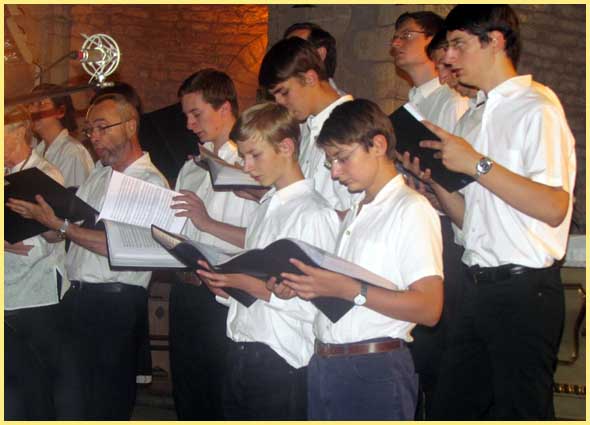 Soit vingt-six membres dont moi-même en renfort en tant que ténor et mon épouse en tant qu’altiste, ainsi que trois cuistots, chargés de l’intendance. »