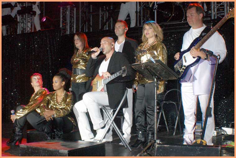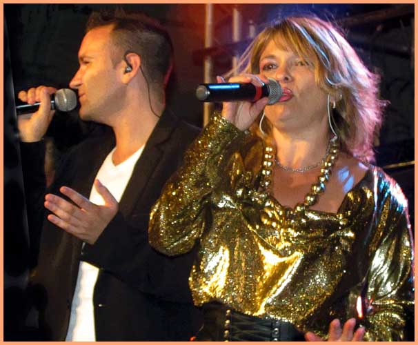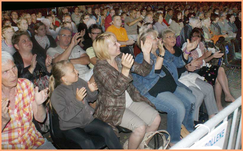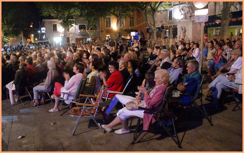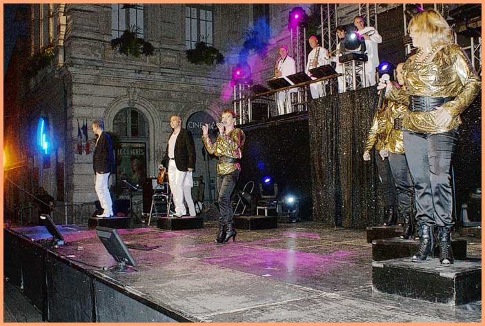 Pour l’heure, un hommage appuyé à Joe Dassin (1938-1980) était proposé par la Compagnie Patrice Péricard, dont l’artillerie lourde pourvoit à la réactualisation des succès d’antan, comme nous l’explique un responsable en coulisses : « Nos spectacles sont axés sur différentes décennies et vedettes de la chanson française. Pour Bollène, nous avons choisi Joe Dassin avec un orchestre, des chanteurs et danseurs, de nombreux costumes et décors pour des sketches, tels que celui qui se déroule dans une boulangerie pour le fameux petit pain au chocolat. »