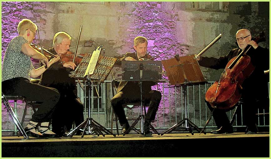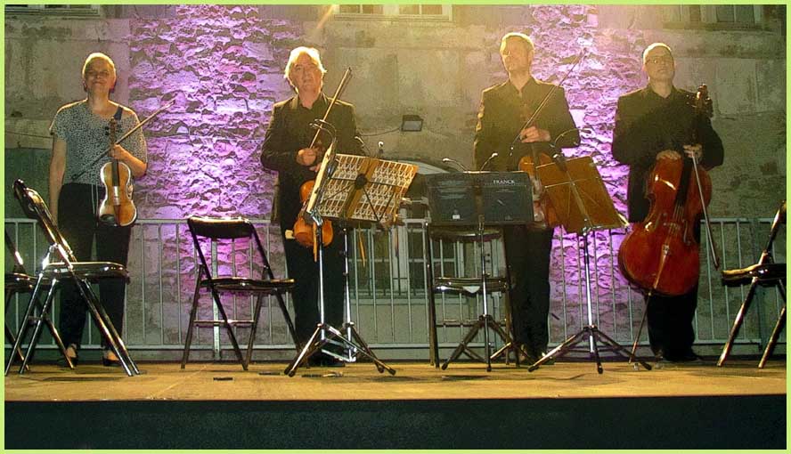 Le temps incertain et un programme involontairement élitiste semblent avoir découragé une partie des festivaliers. Les gradins de la cour Florence Forns n’ont pas fait le plein. Une honnête assistance est tout de même venue apprécier l’un des meilleurs serviteurs français de la musique de chambre, dans sa forme la plus achevée, le quatuor à cordes.