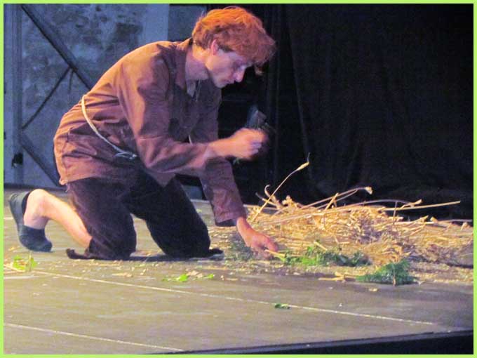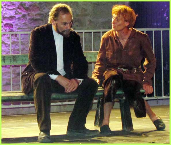On adhère à l’histoire connue de ce fils rouquin rusé, haï par sa mère, consolé par son père et soutenu par la domestique. Une mise en scène épurée, un décor minimaliste (qui tire parti du cadre naturel), un seul tour du cadran, et la partie est enlevée ! Cela nous paraît un peu court. Dancourt s’en explique : « La beauté du texte suffit, inutile d’en rajouter ! »