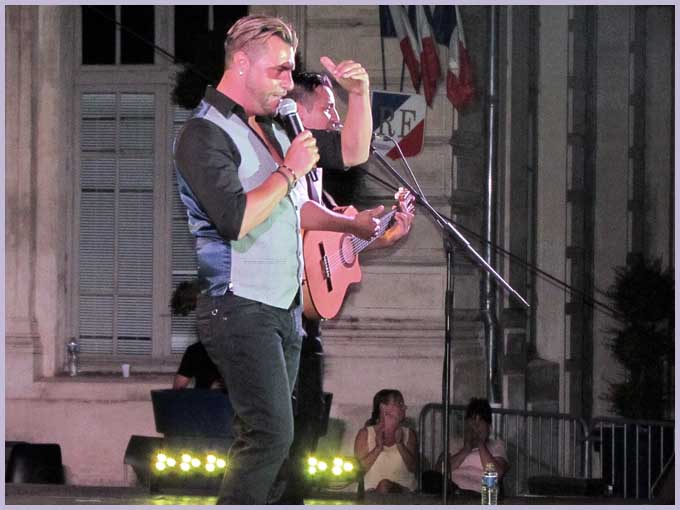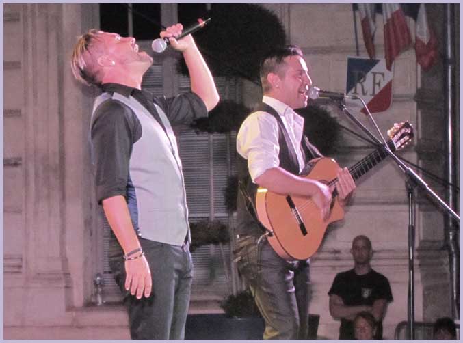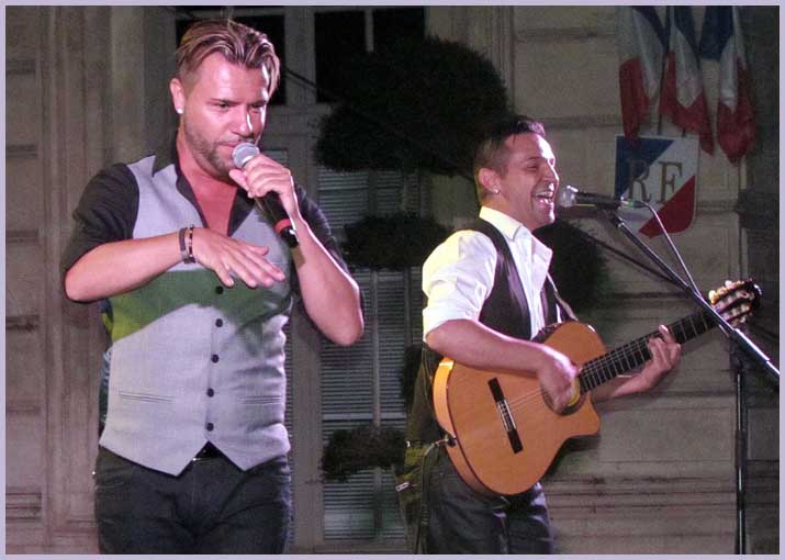 On croyait les Polymusicales terminées avec la prestation héroïque d’un Hervé Villard pathétique qui, le 8 août dernier, a provoqué un record d’affluence. C’était sans compter avec ce supplément hors programme : Tito et Samuel, Les Latinos Lovers, qui assuraient déjà la première partie du spectacle d’Hervé Villard et sont revenus à Bollène ce dimanche soir, pour une « Fiesta latina » et une kyrielle de chansons du soleil.