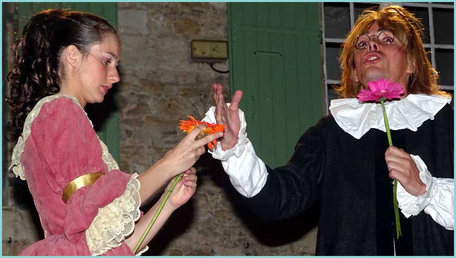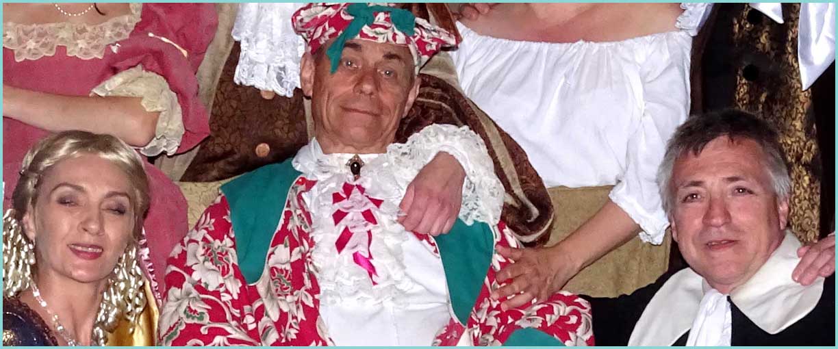Les amateurs du genre connaissent ce grand classique, proposé ici par une dizaine de comédiens qui en comporte deux ou trois ayant joué chez Daniel Dancourt. Au Vers Galant, son homologue féminin n’est autre que Sandrine Posckai, metteur en scène et comédienne (dans le rôle de Toinette), qui nous a courtoisement confirmé en coulisses : « Nous sommes basés à Neuilly-sur-Seine, près de Paris, et nous privilégions les textes classiques, destinés aux enfants et à tous les publics. » Ancrés sur Molière, via les cours Simon et Raymond Girard, les comédiens sont tout aussi à l’aise chez Racine, Feydeau, La Fontaine ou dans le genre déjanté Slapstick.