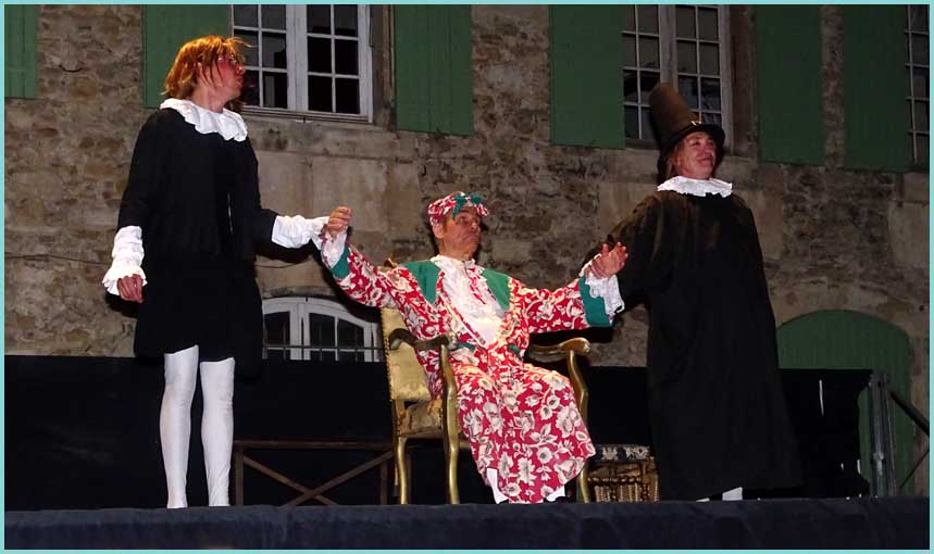 Le créneau théâtre, jusque-là réservé au festival d’été, allait-il disparaître ? Evidemment non ! Avare d’explications, pour l’édition 2016, la Ville a toutefois simplement annoncé « Le malade imaginaire » par la Compagnie parisienne du Vers Galant. Pourquoi pas ? Nous avions tout de même un peu la trouille. N’y perdrions-nous pas au change ? Eh bien non !
