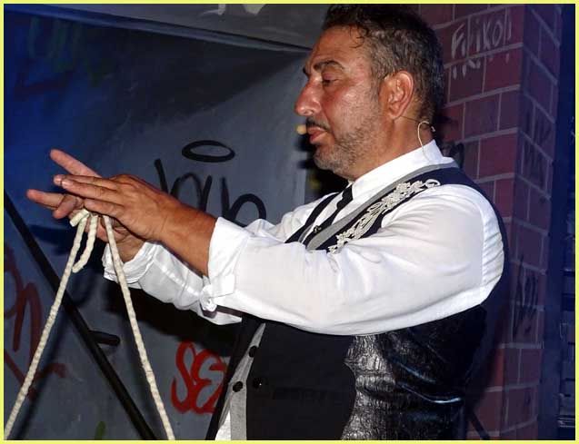 Car celui qu’on nomme « le surdoué de la magie et l’artisan du rêve » n’usurpe pas ces superlatifs. Au mieux de sa forme, Dani Lary a génialement emberlificoté son public qui, occasionnellement, monte sur le podium et participe aux illusions. Quatre compères, dont le copain Eric, serviteur zélé cousin des Marx Brothers, et trois belles égéries polyvalentes, rompues aux avatars les plus invraisemblables, assistent le maître dans ses délires. Un humour bon enfant assaisonne les tours de passe-passe, comme si ce monde de chimères allait de soi. Ficelés comme des rôtis, des patients enfermés dans une malle se libèrent miraculeusement. Doués d’un esprit rebelle, des objets disparaissent et réapparaissent à volonté.