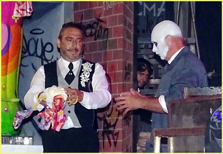Feignant d’avoir la trouille de devoir se produire en public, il a d’abord salué la foule en déclarant n’avoir pas effectué cet exercice en direct depuis quelque temps. Plus habitué aux confortables prestations télévisées du Grand cabaret de Patrick Sébastien, il se devait en effet de ne pas décevoir le raz-de-marée bollénois, venu se repaître de ses remarquables facéties qui tordent le cou au train-train des événements rationnels.