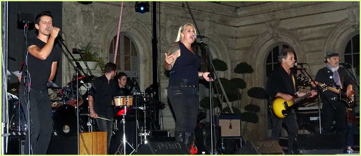 quelques références qui permettent d’élargir l’audience. Surplombé par un écran géant, qui reproduit en direct les interprètes ou d’illustres devanciers auxquels ils rendent hommage, le concert ne manque pas de punch. Neuf exécutants (guitares, basses, piano, chant) se partagent la tâche. Savamment revisité, leur répertoire reprend les grands standards rock, blues, soul des années 50, 60 et 70. Le spectre audiovisuel est large : Les Rolling Stones, Les Beatles, Elvis Presley, Tina Turner, Chuck Berry, etc. J. P. |