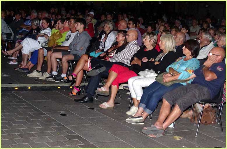 Les amateurs du genre ont assurément été comblés. Les autres, sans doute un peu moins. Quelques néophytes étourdis, venus par hasard, se demandaient même ce qu’ils faisaient là. Le tout remplissait à peine la moitié des bancs sur la place. L’espace vide pouvait aussi s’expliquer par un air frisquet, justifiant le port d’une petite laine, ou par les prémices des JO de Rio, retransmis le soir même à la télévision. Toujours