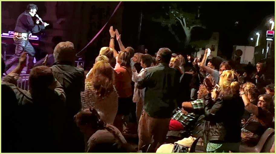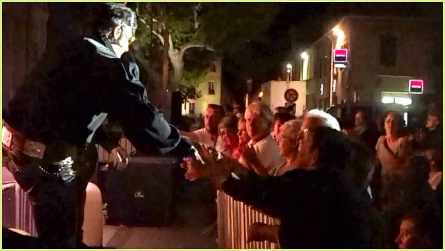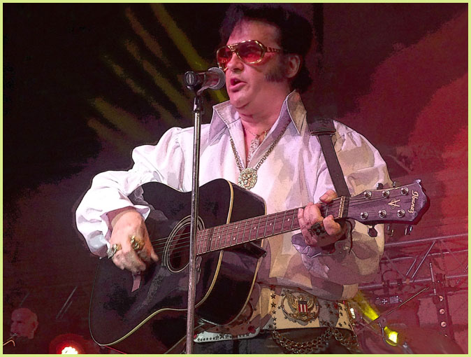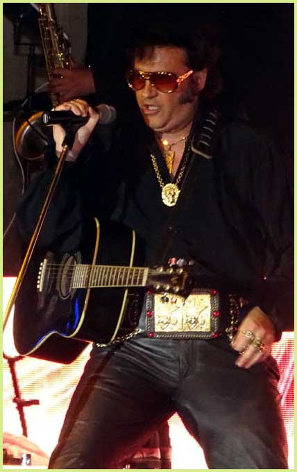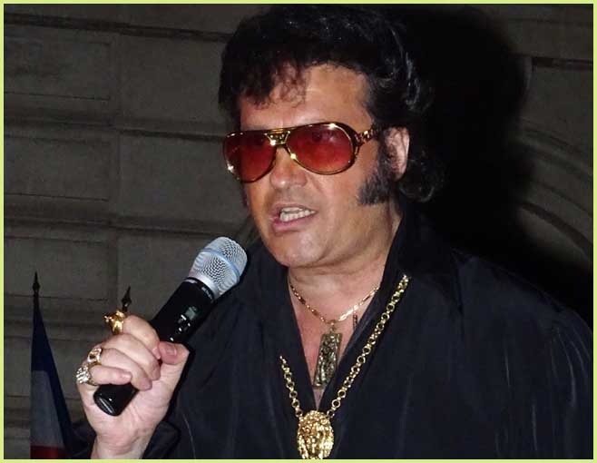 de Bollène - Festival d'été - Mardi 9 Août 2016 Le King a bel et bien surgi sous les traits d’Eryl Prayer ! Le roi du rock’n’roll Elvis Presley aux Polymusicales... Ça alors ! |
