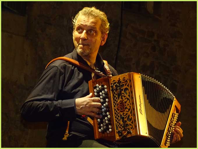 Ce mardi soir, dans la cour Florence Forns, les Polymusicales bollénoises ont donc accueilli avec bonheur un duo superbe : le chanteur et guitariste Joël Favreau et l’accordéoniste Marc Berthoumieux. Pour amadouer le public, d’incontournables tubes font bien partie intégrante du pamphlet. Mais entre les amoureux des bancs publics et le gorille, en passant par le Pont des Arts et Fernande, il y a surtout ce parcours métaphysique où l’individu, infime parcelle d’un tout supérieur, incarne accessoirement le Christ sur sa croix ou le libéralisme économique. Les digressions sont parfois inattendues.