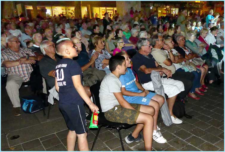 En fonction de leur notoriété respective, deux bombes du show-biz ont fait le plein de la place. La foule compacte des festivaliers peut aussi s’expliquer par la réduction drastique, cette année, du nombre de spectacles, amputée de deux tiers (sept au lieu d’une vingtaine), mais reportée en partie à l’automne à la nouvelle salle des fêtes (prochainement inaugurée). Dans l’immédiat, selon le fameux dicton « Mieux vaut un tiens que deux tu l’auras », les Bollénois se sont donc rués sur cette seconde soirée festive (après celle de la Compagnie Créole), gratuitement offerte par la Ville.