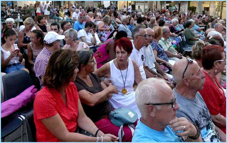 Une assistance honnête rassemblait toutefois les fans, côtoyés par la clientèle des troquets mangeant leurs pizzas et les habitués des Polys bollénoises, invariablement arrimés par la gratuité des spectacles, offerte par la Ville.