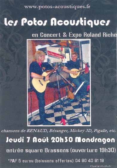 En juillet dernier, le Comité des fêtes de Mondragon  les invitait pour la première fois à participer à l’animation du village, dans un contexte diversifié : pétanque, jeux pour enfants, buvette, paella, dj… D’où ce public distrait qui sirote sa bière ou son coca en parlant d’autre chose. C’est la loi du genre qui sature les récréations estivales. Comme tant d’autres, Les Potos Acoustiques valent mieux que cela.