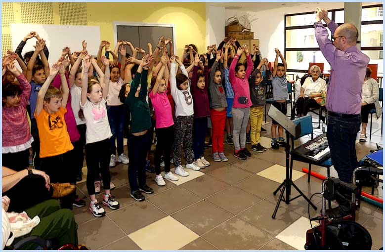 La résidence des Balcons de Peyrafeux propose diverses activités aux seniors du village. Une chorale s’y est tout naturellement constituée. Un peu courte quant à l’effectif. D’où son rapprochement avec celle de l’hôpital de Pont-Saint-Esprit, dirigée par Didier Llorens. Les deux chœurs chantent donc périodiquement ensemble à Mondragon. Le dernier concert était enrichi par le concours de jeunes choristes, venant de deux classes élémentaires de l’école Jean-Moulin, dirigées par Valentin Conte, sous l’égide de l’intercommunalité. Un bel exemple de rencontre intergénérationnelle, conclu par un bon goûter.    J. P.