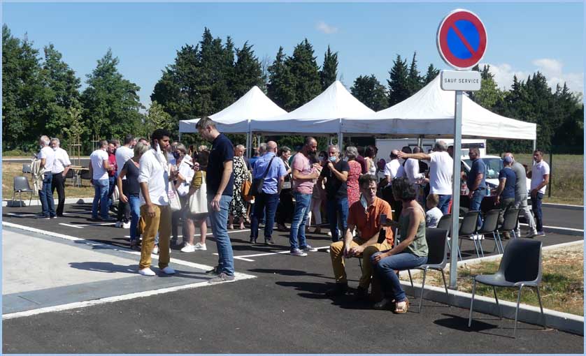 Christian Peyron (maire de Mondragon et à l’origine du projet), et l’ensemble
