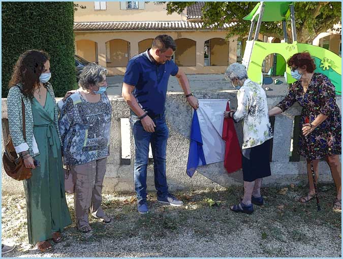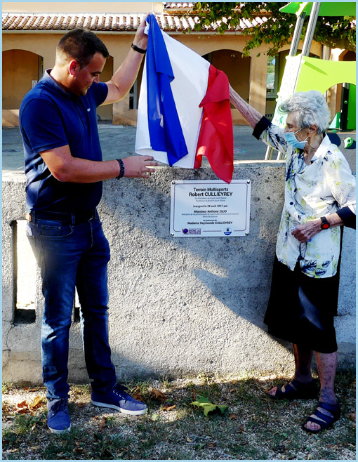 ![]() Dévoilement de la plaque par Anthony Zilio et Raymonde Cullieyrey |