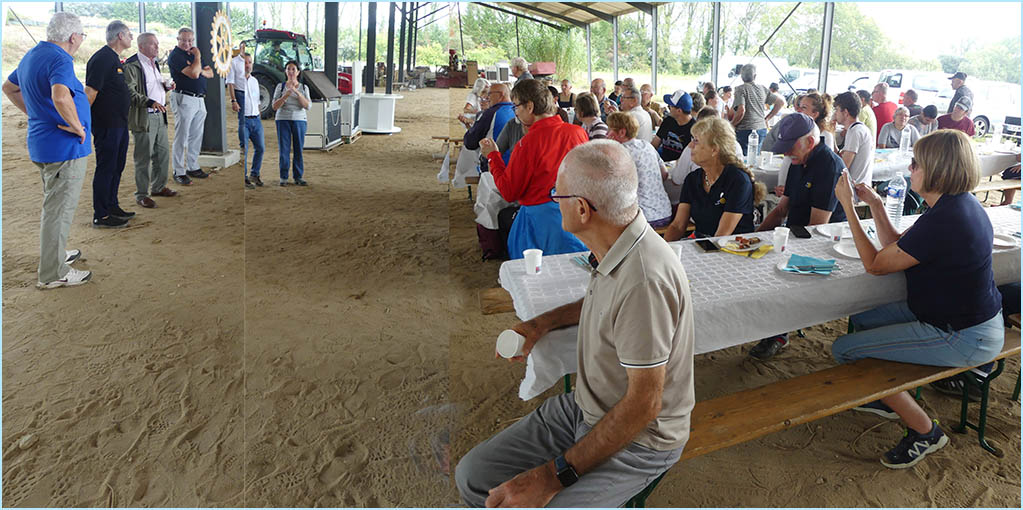 Etaient présents Laurence Chaix, présidente de l'ADAPEI, les pensionnaires et leur famille, les amis allemands du Rotary Club d'Hassfurt (avec leur délicieux pains spéciaux et saucisses bavaroises), les rotariens du Tricastin et d'Ardèche, les fidèles membres de la Légion d'honneur du comité de la Drôme provençale. le député drômois Fabien Limonta. A noter aussi l'accueil du gouverneur Jean-Pierre Chassagnole du District 1780 Rhône-Alpes Mont Blanc, venu le lendemain de sa visite au Rotary Club Tricastin, programmée spécialement pour participer à cette action phare du club.