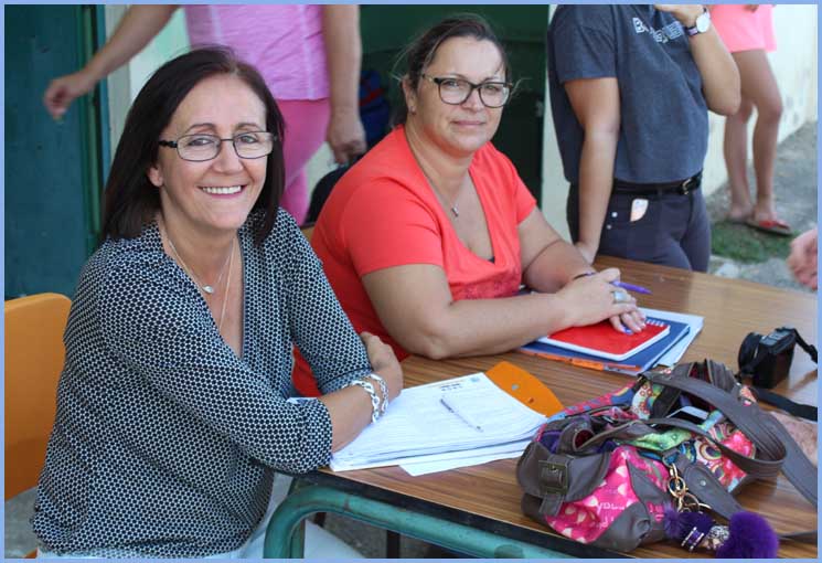 Des institutrices ? Mais non ! Ce sont les deux secrétaires du SCOMM et du Sporting-club Mondragonais qui travaillent main dans la main pour assurer les licences :  Paquita et Sabine ! Bientôt deux secrétaires pour un seul club ?