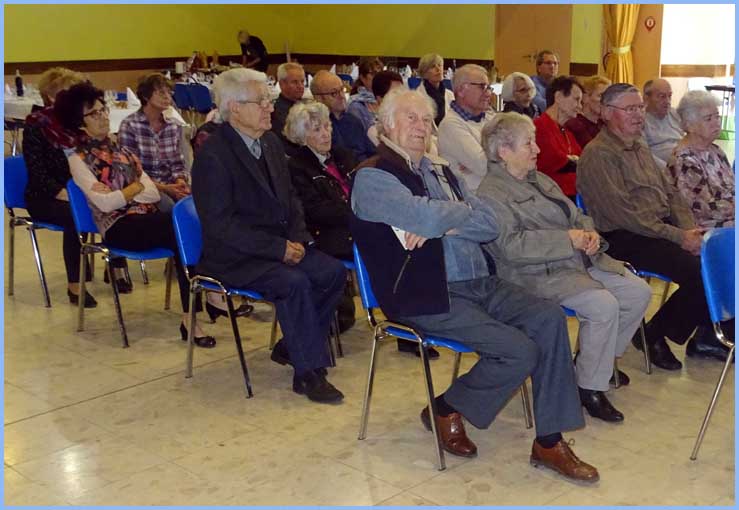 Assemblée générale, suivie d’un bon repas.            Jeannine Balazuc, présidente (au centre)
