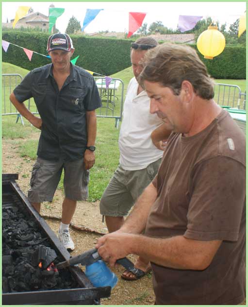 ![]() ![]() ![]() Les coupes seront gagnées au concours de boules... qui se fiche de la pluie ! Difficile d’attiser les braises dans l’humidité ambiante. |