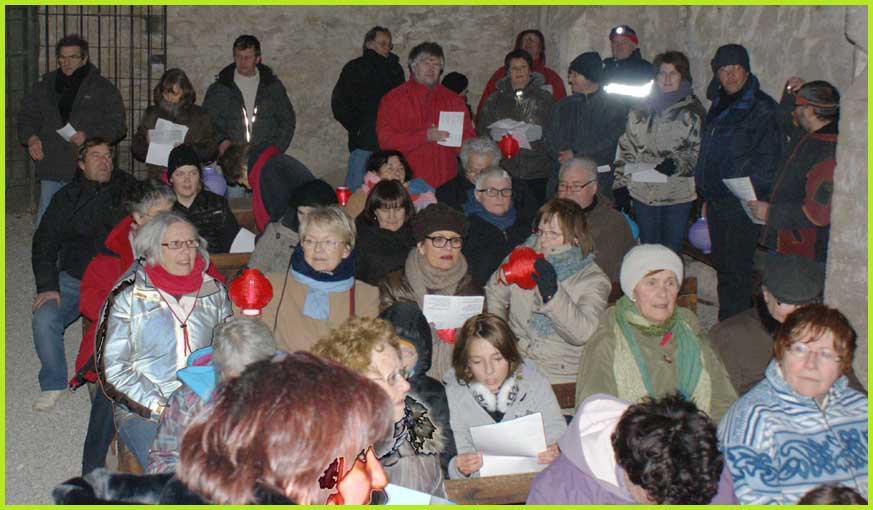 Harangués par Aline Brisa, présidente et égérie dudit foyer, les plus courageux ont véhiculé leurs lampions, chahutés par le vent. Escortés par Patrick Rochier, randonneur attitré, ils étaient une bonne centaine, dont Madame le maire et plusieurs élus. Là-haut, dans la chapelle, les ouailles ont chanté un florilège de chansons dont « Les copains d’abord, Félicie, la Coupo Santo… »