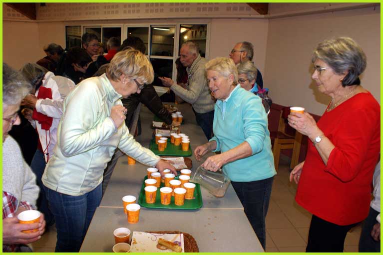 Le retour au foyer a gratifié les pèlerins d’un bon chocolat chaud, de crêpes et de gâteaux. Jean-Paul Blanc, enseignant retraité et membre fondateur du foyer, leur avait concocté une rétrospective en image, avec des photos et des films datant des années 60 à 90… Souvenirs, souvenirs !
