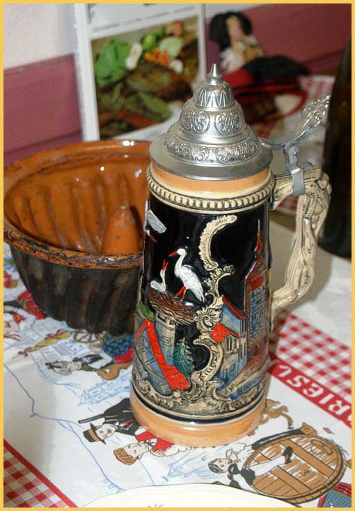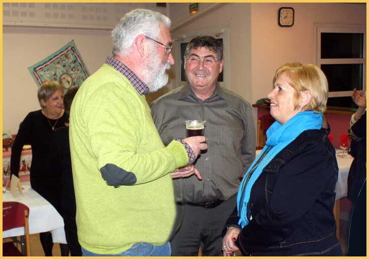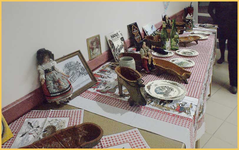 C’est l’Alsace qui disjoncte allègrement les esprits, superbement conditionnés par des images et des objets artisanaux, obligeamment fournis par des sympathisants. Coiffes alsaciennes, buveurs de bière, cigognes et autres poupées typiques ornent la salle.