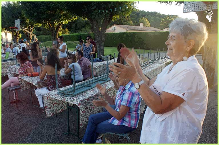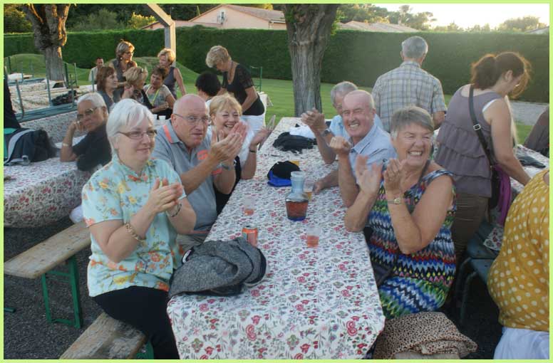 ![]() Une bonne humeur contagieuse ricoche sur les tablées... pour la joie d'Aline (présidente).  |