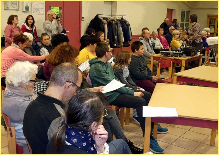 La soirée s’est poursuivie avec un diaporama axé des voyages dans le monde, présenté par le globe-trotter Lucien Ducord, puis s’est conclue autour de boissons chaudes (initialement prévues après la marche nocturne).