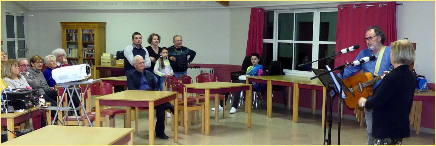 La soirée s’est chaleureusement repliée au foyer autour du duo musical Armel et Nathalie.