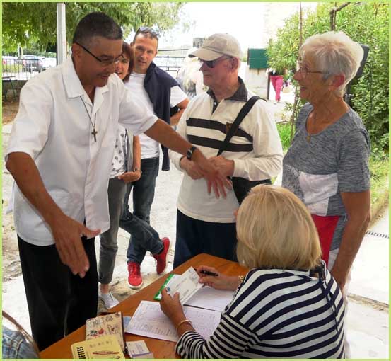 Incluse dans le créneau des journées du patrimoine, la kermesse du quartier de Saint-Pierre augmentait d’autant son impact. Organisée par l’association paroissiale Saint-Pierre Amitiés, elle brillait par ses atouts habituels : apéritif offert aux visiteurs,  repas en plein air au sortir de la messe (célébrée à la collégiale), jeux de société, stands artisanaux, etc. Durant l’après-midi, à l’église, une option culturelle portait sur une conférence et un diaporama, animés par Gilles Tournillon, restaurateur d’objets sacrés. Précisément, deux exemples de ses propres travaux sur ébénisterie sont visibles dans le saint lieu : la restauration et la dorure du tabernacle et de Mona Lisa (la Joconde).