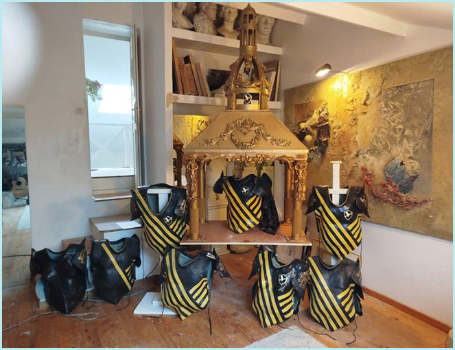 ![]() Armurerie de la grande commanderie de la Sainte Griffe et Châsse confectionnée avec des feuilles d’Or pour accueillir la Relique |