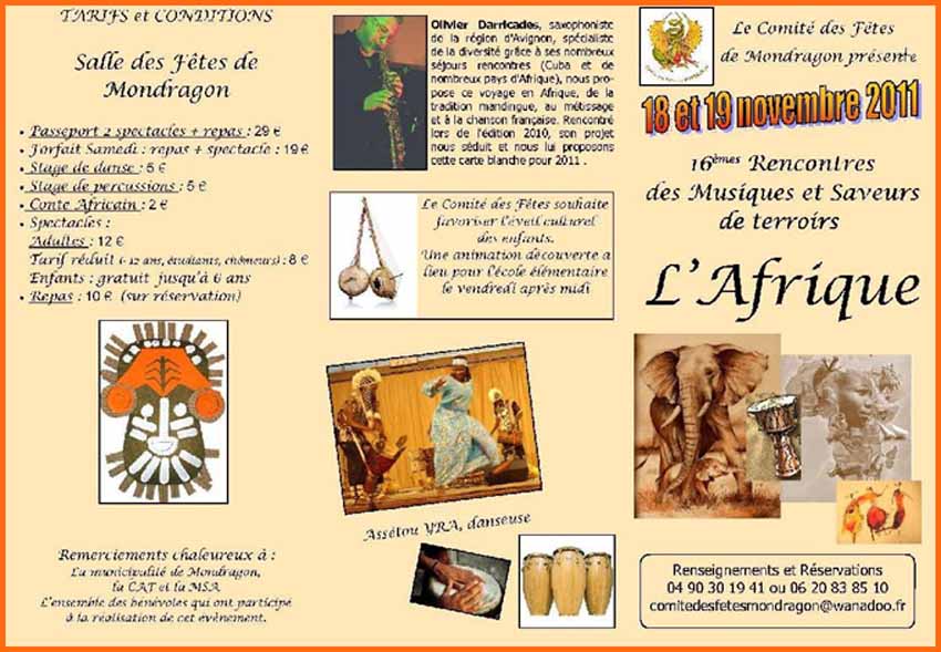 Les rencontres automnales des musiques et saveurs de terroirs sont annoncées. Cette 16ème édition est axée sur l’Afrique et occupera la salle des fêtes. Elle est proposée par le Comité des fêtes qui nous a mitonné le programme suivant.