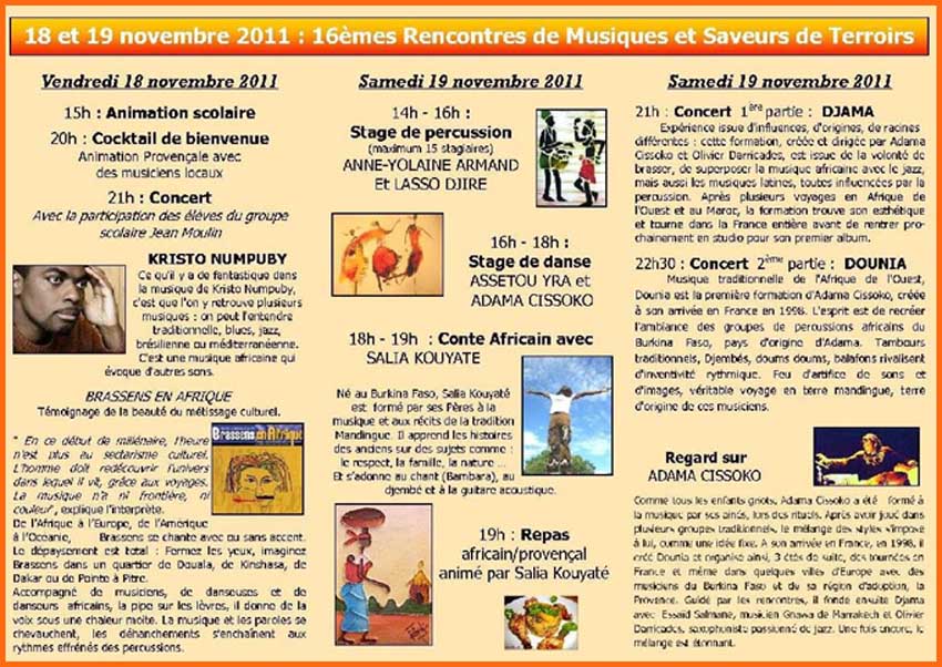 • 19h : repas africain-provençal, animé par Salia Kouyaté