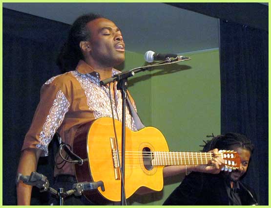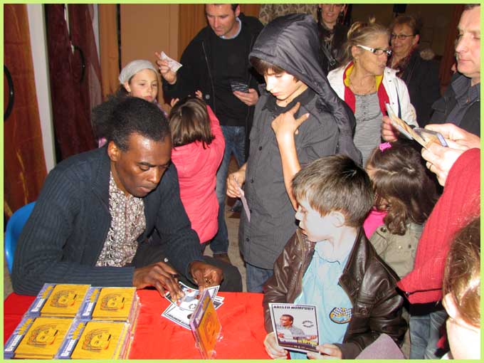 Jusque-là un peu molle du genou, la soirée s’est aussitôt ravigotée avec la rythmique de Kristo Numpuby, au mieux de sa forme. Brassens en Afrique ? Il fallait y penser ! « J’ai grandi avec et j’ai voulu le faire connaître à mes enfants et mes amis », nous confiera l’artiste en coulisses.