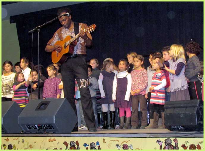 La magie opère en passant par les enfants de l’école Jean-Moulin, qui, durant la quinzaine qui a précédé l’événement, ont planché sur le thème. Résultat : le hall et la salle des fêtes sont couverts de dessins. Suspendues à des cordes, des étoffes colorées ont l’air de sécher au soleil après la lessive. On en prend plein les mirettes. Chapeau bas pour cet écrin magnifique !