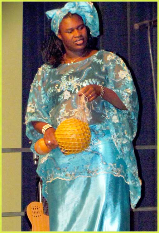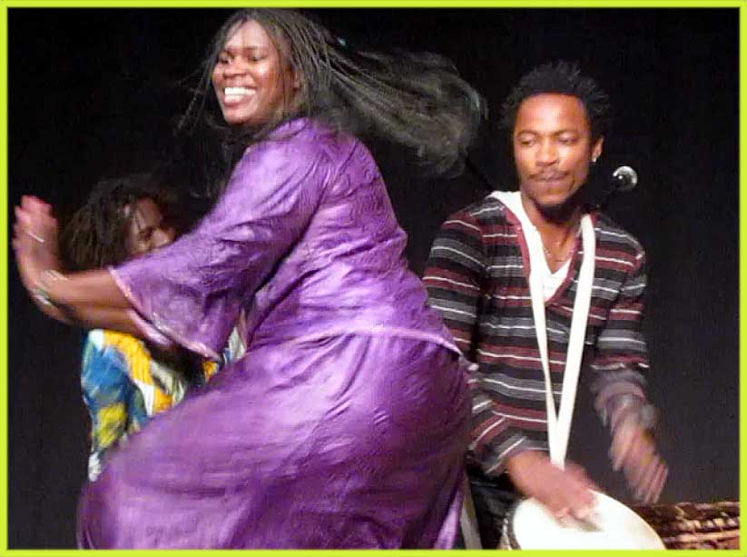 Les percussions à mains nues sont époustouflantes. L'égérie africaine a changé de robe.