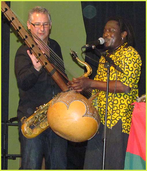 Deux groupes distincts ont suivi, autour d’Adama Cissoko. Le premier, nommé Djama, est co-dirigé par Olivier Darricades qui, non content d’utiliser sa carte blanche pour l’organisation du festival, se mouille ici en s’immisçant avec son saxo.