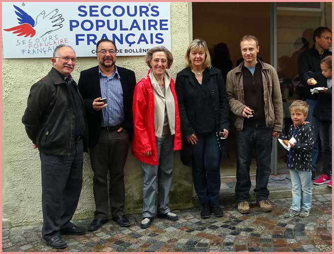 La signature du bail était suivie d’une cordiale collation, en présence de nombreux sympathisants. Avec plus d’espace et de commodité, les permanences se poursuivent donc le lundi pour la friperie (jour de marché), le jeudi pour les colis alimentaires et, occasionnellement le samedi. A noter aussi, le premier lundi de chaque mois, un « Pop’Café » autour d’un débat sur un sujet de société.              J. P.