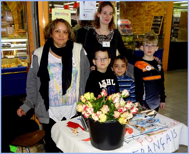 d’une classe élémentaire de l’école Curie, David, Laurent et Ethan, proposaient donc pour un coût de 2 € une rose accompagnée d’un