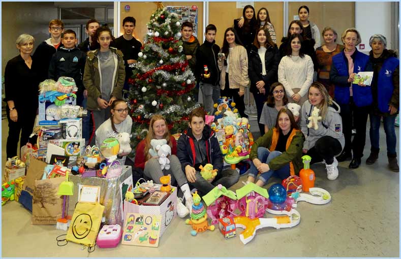 Ce Père Noël-là porte une robe verte. C’est celui de l’antenne bollénoise du Secours Populaire. Cette entorse sympathique justifie chaque année, au profit des enfants des familles défavorisées, une collecte de jouets, effectuée par les élèves d’établissements scolaires de la Ville : Curie et Péri (maternelle et élémentaire) et Lycée Lucie Aubrac. Chez ce dernier, l’action a engagé 24 élèves de seconde qui ont élargi les dons en sollicitant la générosité d’une dizaine de commerçants de la région, à Saint-Paul-trois-Châteaux, Sainte-Cécile-les-Vignes, Pont Saint-Esprit, Montélimar, Bagnols-sur-Cèze, Monteux, Châteauneuf-du-Rhône, Orange et Pierrelatte. Citons aussi ce don de 500 € offert au Secours Populaire du Teil, selon la chaîne de solidarité. Quant à la doyenne bollénoise Yvonne bénéficiaire (95 ans), elle bénéficie d’un fauteuil confortable pour mieux apprécier sa télé. J. P.