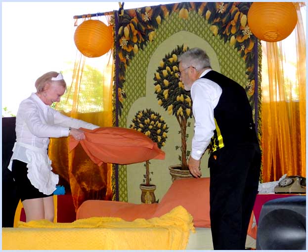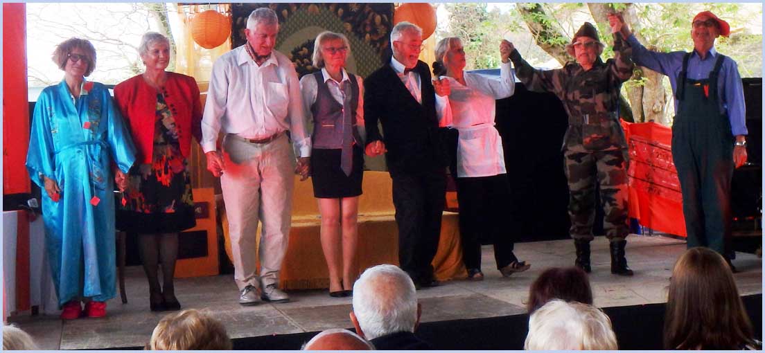 Les discours de bienvenue des élus présents étaient suivis d’un apéritif, puis d’un repas campagnard, concocté pour plus de 70 convives par l’association. Au sortir du dessert, une animation était confiée à la troupe du « Petit théâtre d’Uchaux » qui a conquis l’assistance avec « La chambre mandarine », une comédie de boulevard de Robert Thomas.