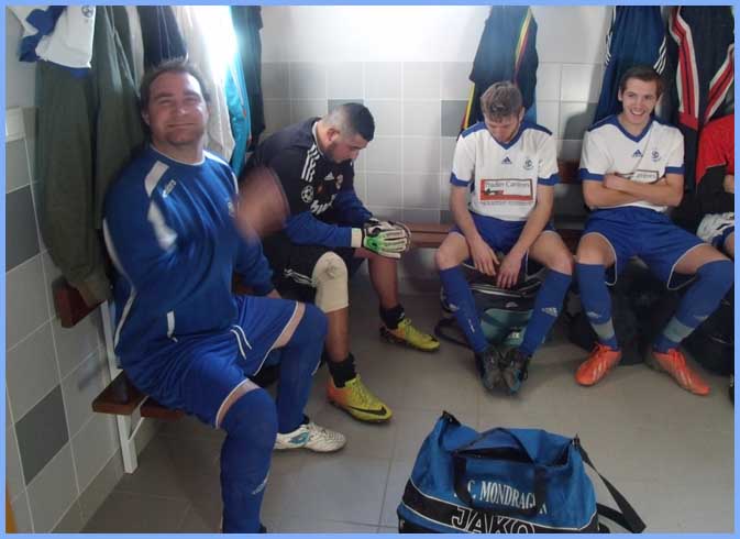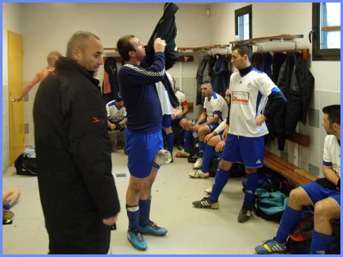 On se réchauffe dans les vestiaires.               Photos Jean-Luc Bouverat